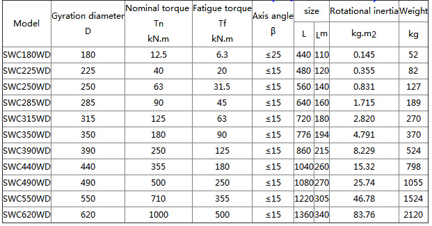 The SWC-WD type telescopic short universal joint is one of the most commonly used couplings. By utilizing the characteristics of the structure, it is possible to continuously rotate the two axes at different angular speeds or large axial movements without the same axis or axis, and reliably transmit torque and motion. Can be widely used in metallurgy, lifting, engineering transportation, mining, petroleum, shipbuilding, coal, rubber, paper machinery and other heavy machinery industry to transmit torque in the mechanical shafting.