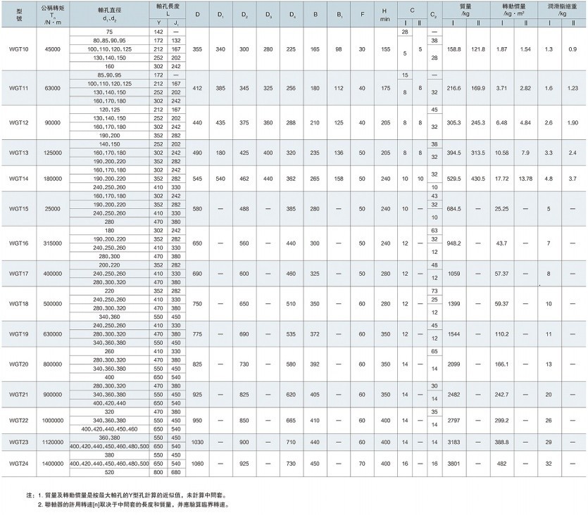 WGT型--接中間套型,適用于兩軸長距離聯接,許用轉速[n]取決于中間套的長度和質量,并應驗算臨界轉速;