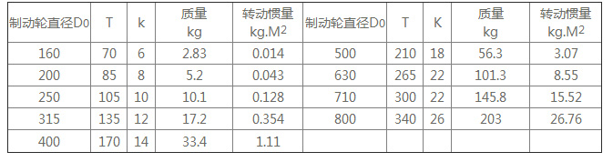 注:1、質量與轉動慣量是按******直徑的Y軸孔計算的近似值,未計算制動輪。
