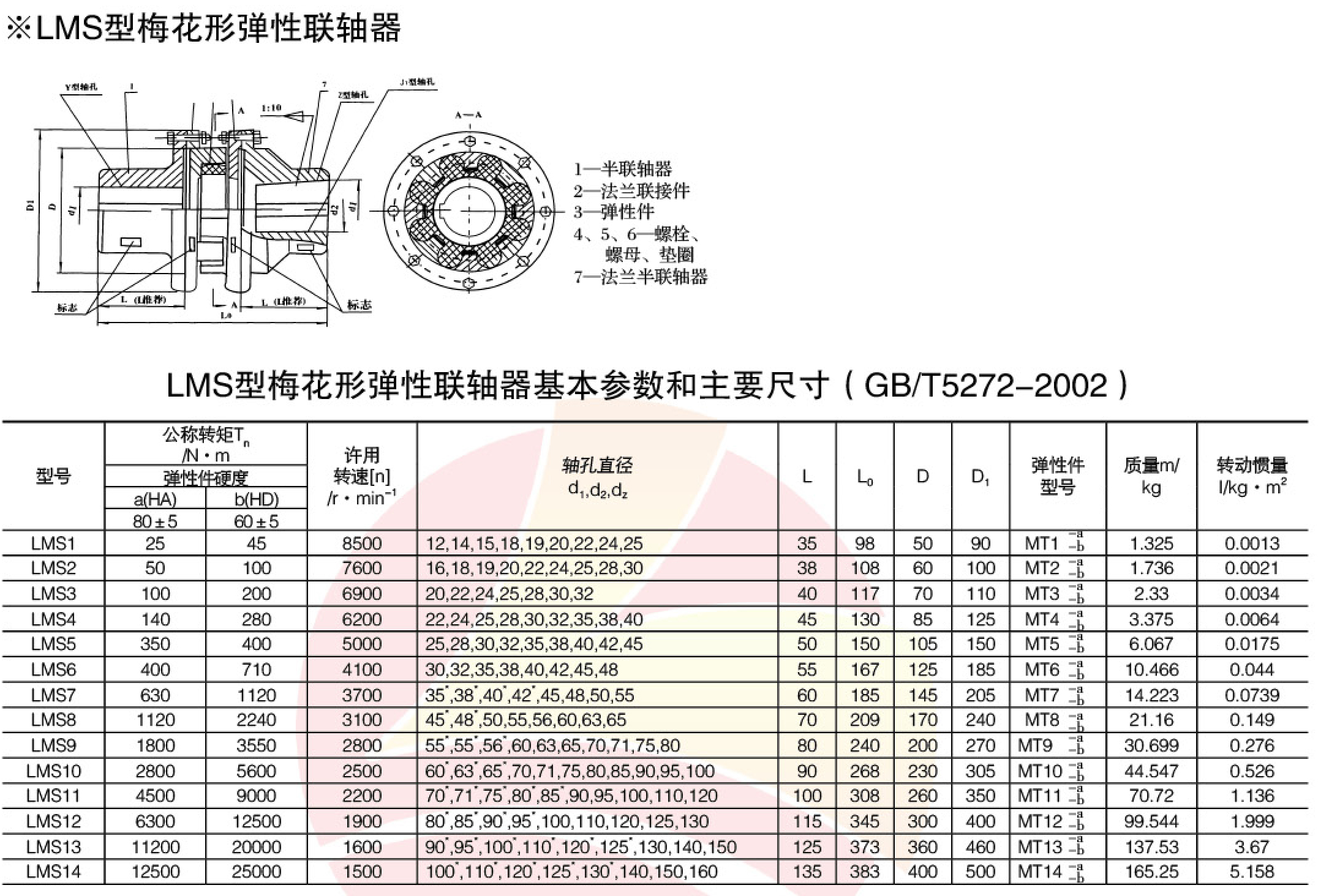 MLS(LMS)梅花彈性聯軸器 特點及應用場合:具有補償兩軸相對偏移、減振、緩沖性能、徑向尺寸小,結構簡單、不用潤滑、承載能力較高,維護方使、更換彈性元件需軸向移動 (MLS型除外),適用于聯接同軸線,起動頻繁,正反轉變化,中速、中等轉矩傳動軸系和要求工作可靠性高的工作部位。不適用于重載、低速及軸向尺寸受艱制,更換彈性元件后兩軸對中困難的部位。