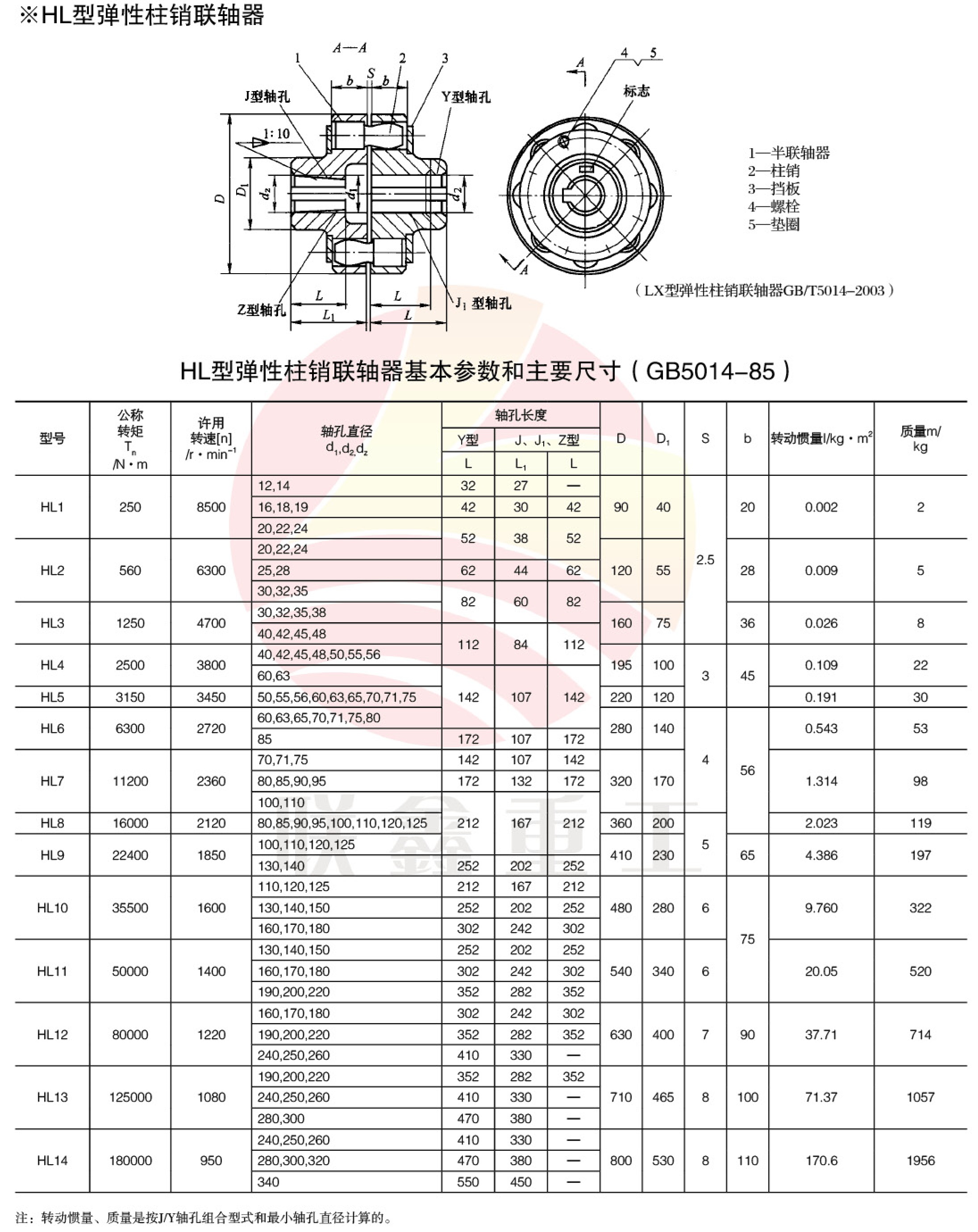 HL型彈性柱銷聯軸器簡稱“彈性柱銷聯軸器”屬于柱銷聯軸器的一種具有較大結構簡單、合理,維修方便、兩面對稱可互換,壽命長,允許較大的軸向竄動,具有緩沖、減震等性能。HL型彈性柱銷聯軸器軸孔型式有:圓柱形(Y)、圓錐形(Z)和短圓柱形(J)。軸孔和鍵槽按國家標準GB3852-83《聯軸器軸柱和鍵槽形式及尺寸》的規定加工。HL型彈性柱銷聯軸器也成尼龍柱銷聯軸器的主體采用45#鑄鋼精密鑄造成型,軸孔和鍵槽采用拉制成型,彈性柱銷采用MC尼龍車削制成。有微量補償兩軸線偏移能力,彈性件工作時受剪切,工作可靠性較弱,適用于要求很低的中速傳動軸系,不適用于工作可靠性要求較高的工況。 ![]() |