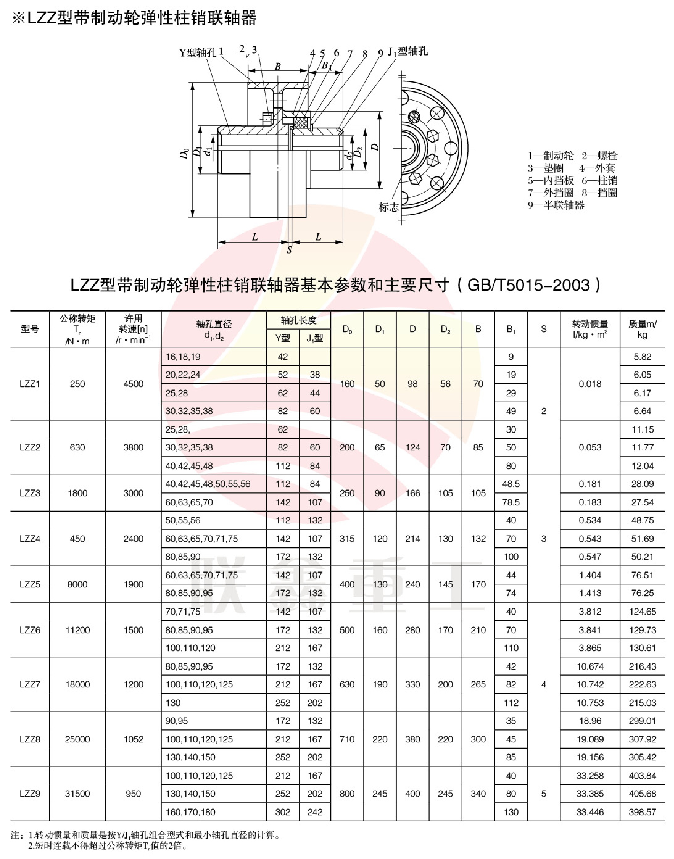 ZLL型帶制動輪彈性柱銷齒式聯軸器簡稱”彈性柱銷齒式聯軸器“通過彈性柱銷傳遞轉矩實現兩半個聯軸器聯接,具有軸偏移補償能力和減震性能,可代替部分齒式聯軸器。ZLL型帶制動輪彈性柱銷齒式聯軸器與齒式聯軸器相比,結構簡單且組成零件較少,制造較方便,不用齒輪加工機床。ZLL型帶制動輪彈性柱銷齒式聯軸器屬于柱銷聯軸器的一種,按(GB/T5015-2003)標準制作;工作溫度為-20 ~70℃;軸向許用補償量為:±1.5~3mm;徑向許用補償量為0.3~1.5mm;角向許用補償量為0.5°。 ZLL型帶制動輪彈性柱銷齒式聯軸器的彈性柱銷利用尼龍棒車削而成,所以也稱為尼龍柱銷齒式聯軸器,尼龍柱銷為自潤材料不需潤滑,拆下檔板即可更換。尼龍柱銷置于兩個半聯軸器與外環之間的對合孔中,聯軸器通過柱銷傳遞轉矩,ZLL型帶制動輪彈性柱銷齒式聯軸器傳遞公稱扭矩為250~31500N.m;許用轉速為4000~950r/min;屬于高扭矩低轉速型聯軸器。