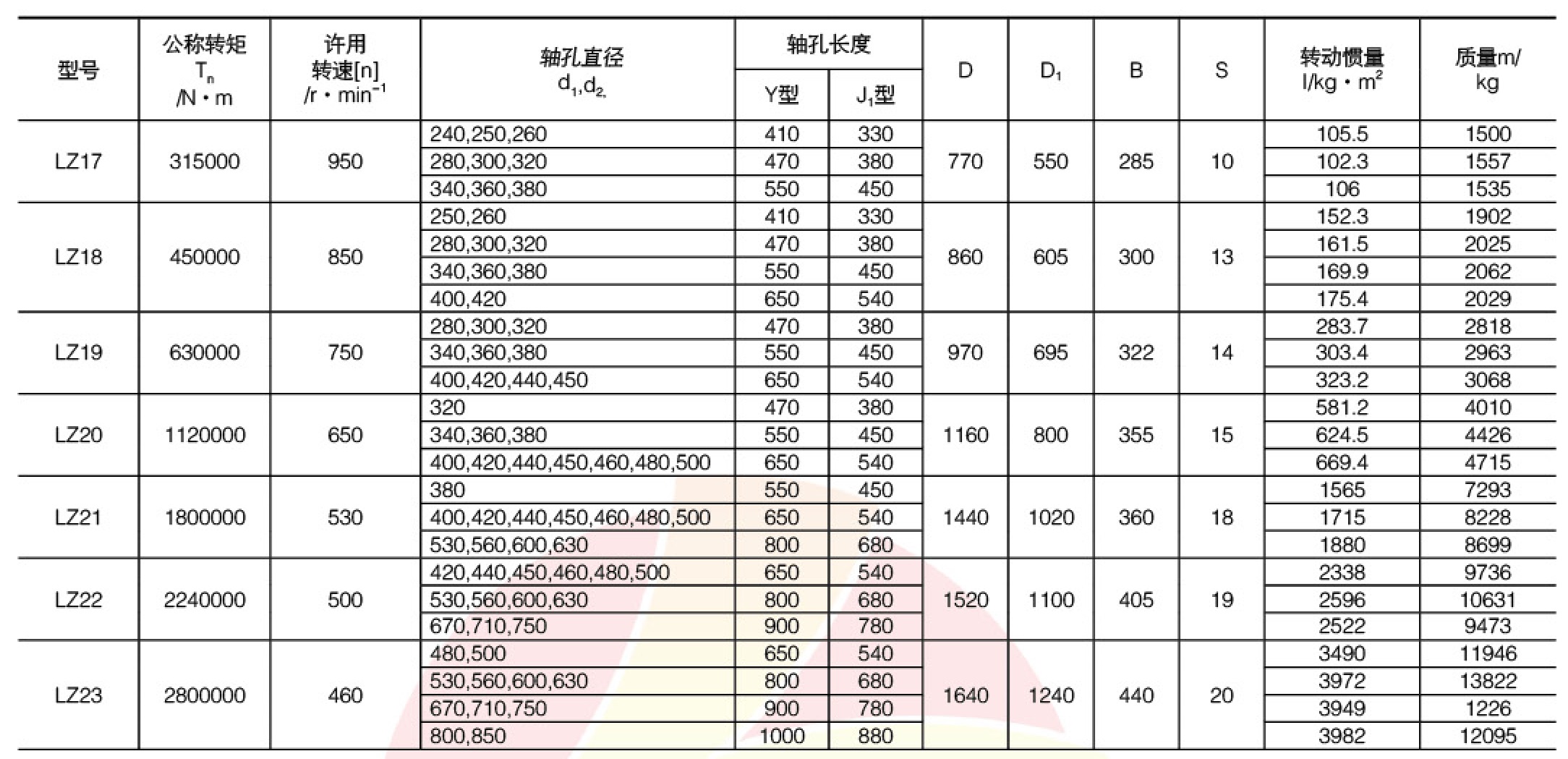ZL(LZ)型柱銷齒式聯軸器 特點及應用場合:可補償兩軸相對偏移,減振功能差,傳動精度低,傳遞轉矩大,與齒式聯軸器相比,結構簡單,質量輕,制造方便,維護簡便.不用潤滑,部分代替齒式聯軸器,噪聲大,適用于大、中轉矩軸系傳動,不適用于對減振效果要求高和對噪聲需嚴加控制的部位。
