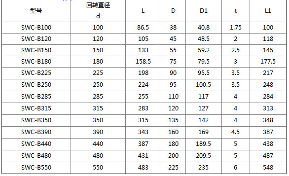 SWC萬向聯軸器用十字包的主要尺寸:mm